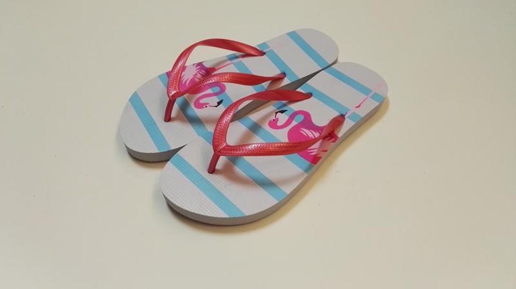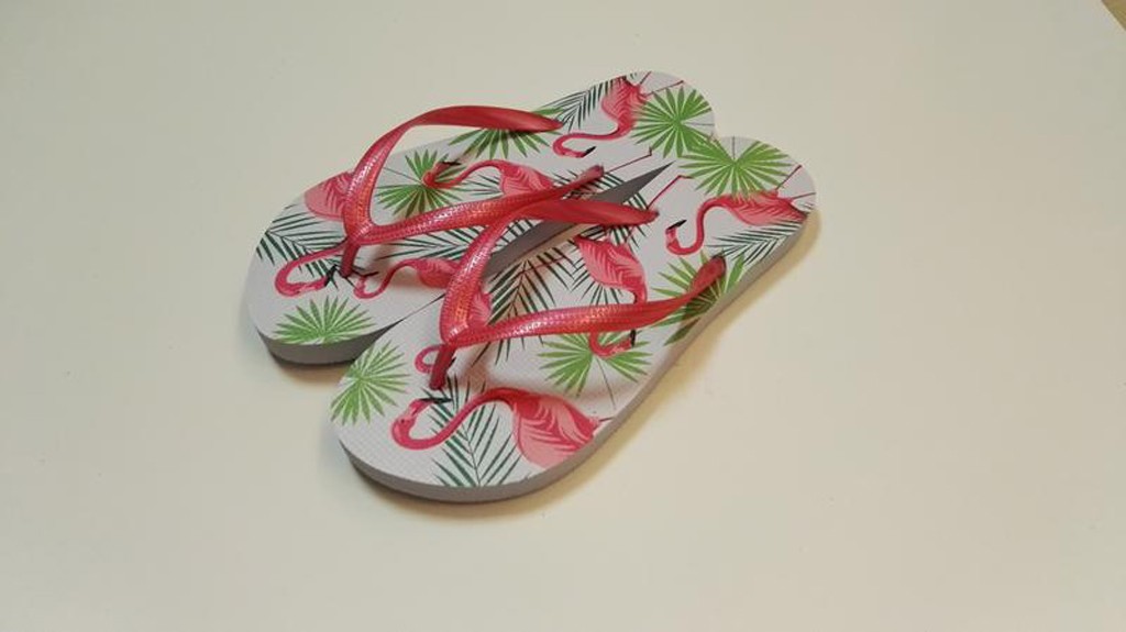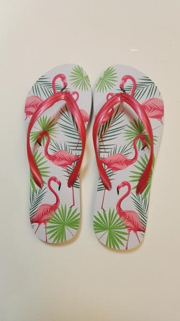 Dámské žabky s velice oblíbeným motivem "Plameňáci". Žabky jsou pohodlná obuv pro horké letní dny, k vodě, ale i na běžné nošení. Velikost EU 40. Délka 26,6 cm. Assort barev. Více o produktu