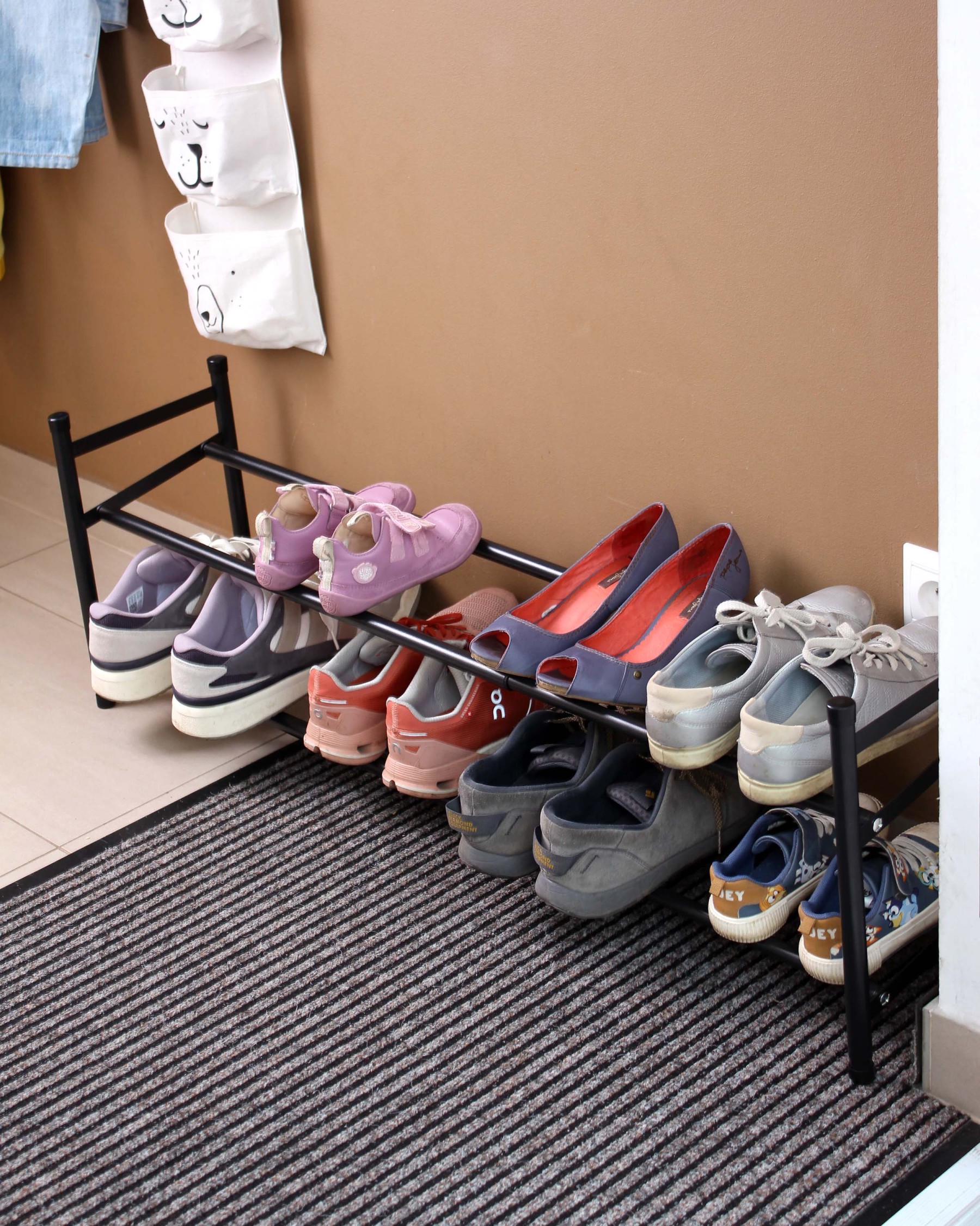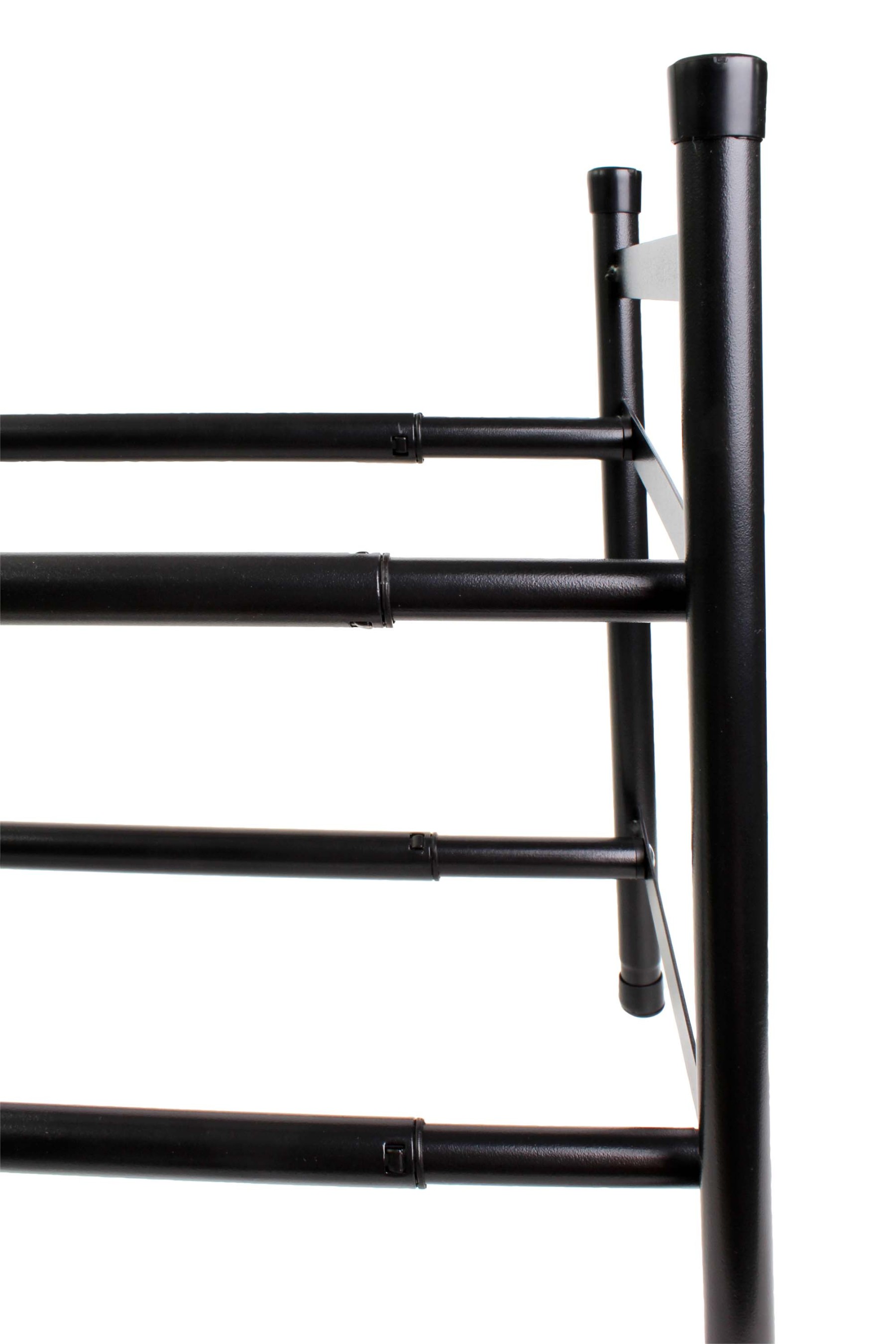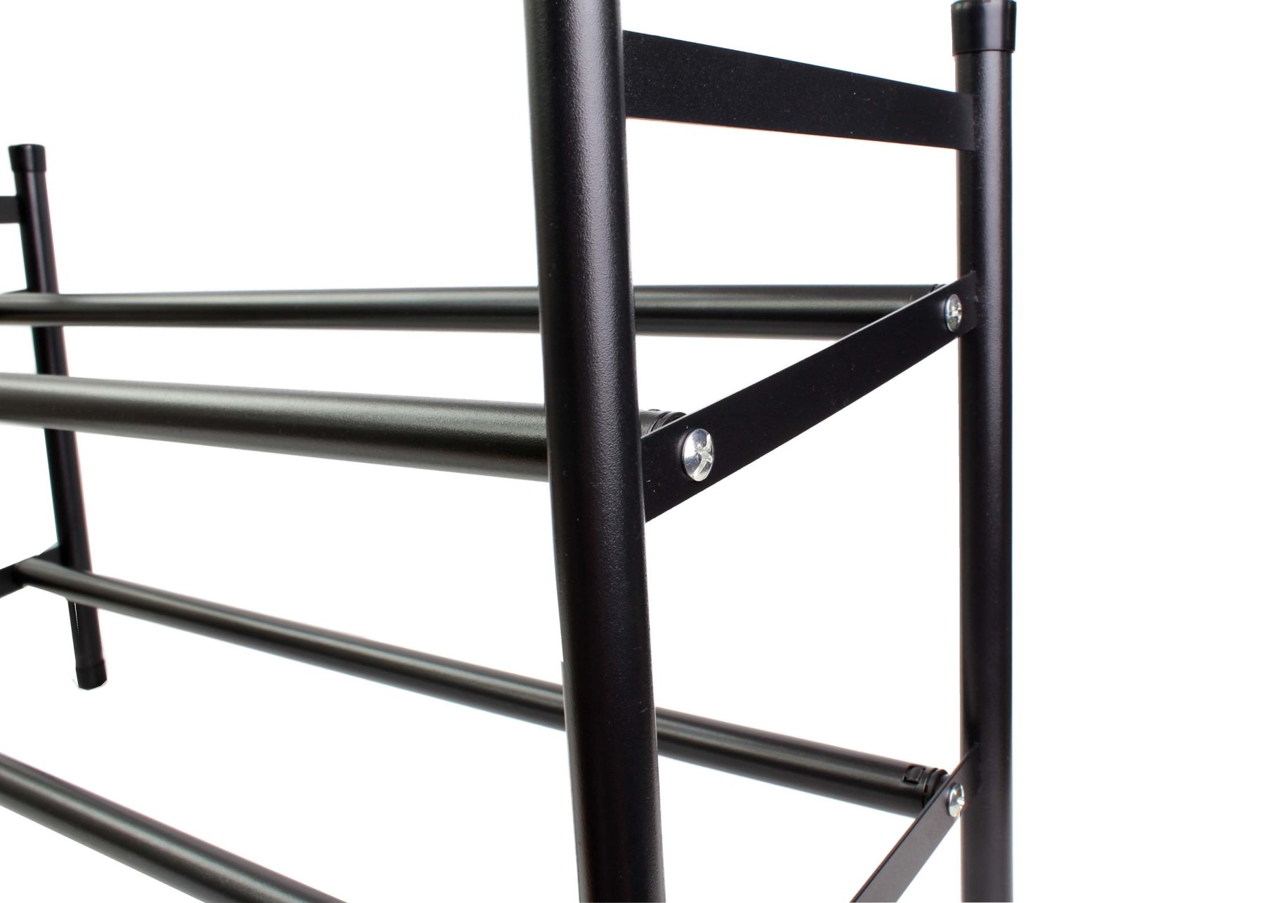 Pevná kovová konstrukce zajišťuje stabilitu a dlouhou životnost, zatímco otevřený design umožňuje dobré větrání obuvi a rychlý přístup ke každému páru. Botník je dodáván v rozloženém stavu a jeho složení je velmi jednoduché — zvládnete jej během několika minut pouze s pomocí běžného křížového šroubováku, bez potřeby speciálního nářadí. Díky kombinaci nastavitelné šířky, kompaktních rozměrů a vysoké kapacity je ideální volbou pro každodenní organizaci obuvi.