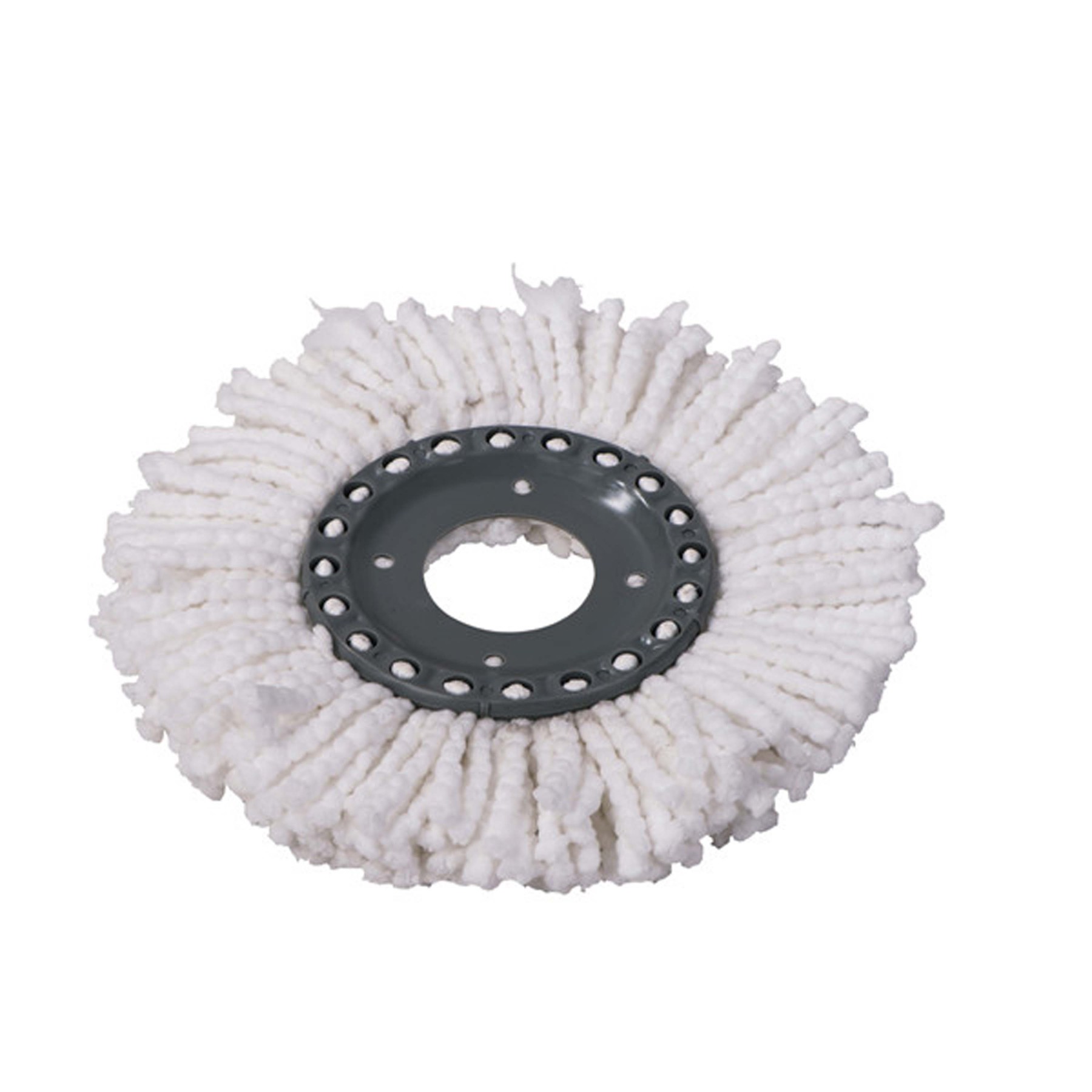 Součástí náhradní hlavice je pevný plastový držák o průměru 16cm, který slouží jako základ pro upevnění k mopové násadě. Hlavici stačí jednoduše přiložit k držáku na tyči mopu a lehkým zacvaknutím ji bezpečně upevnit. Výměna je rychlá a zvládne ji během několika vteřin opravdu každý.