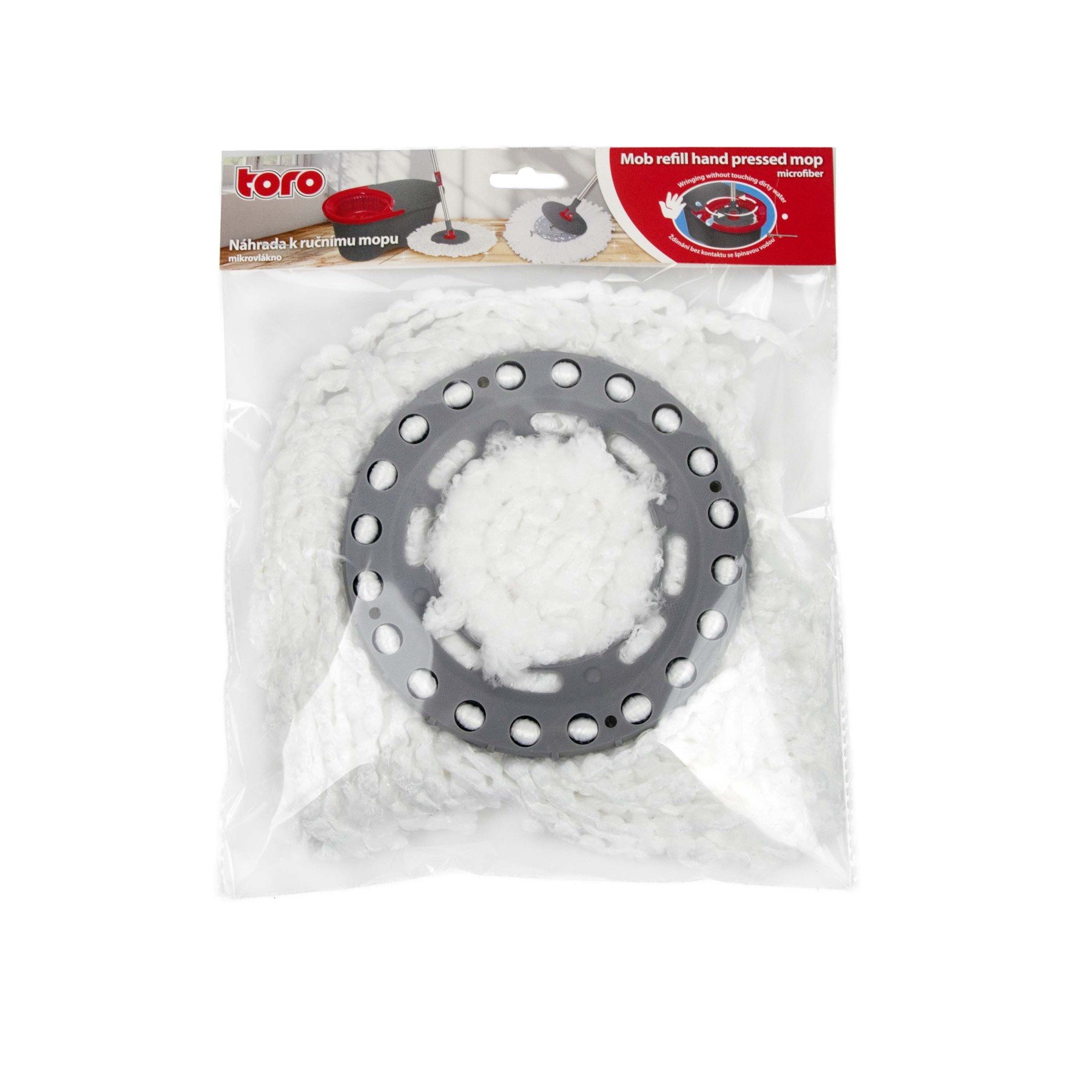 Náhradní mopová hlavice z mikrovlákna je určena pro mop na podlahu se ždímacím košem TORO Tornádo a umožňuje snadnou výměnu opotřebené čisticí části. Husté mikrovláknové třásně mají vysokou savost a účinně zachytávají prach, vlasy i drobné nečistoty, takže podlahy zůstávají čisté bez zbytečného rozmazávání špíny. Díky průměru je hlavice plně kompatibilní s rotačním mopovým setem TORO Tornádo se ždímacím košem (art.číslo 420074).