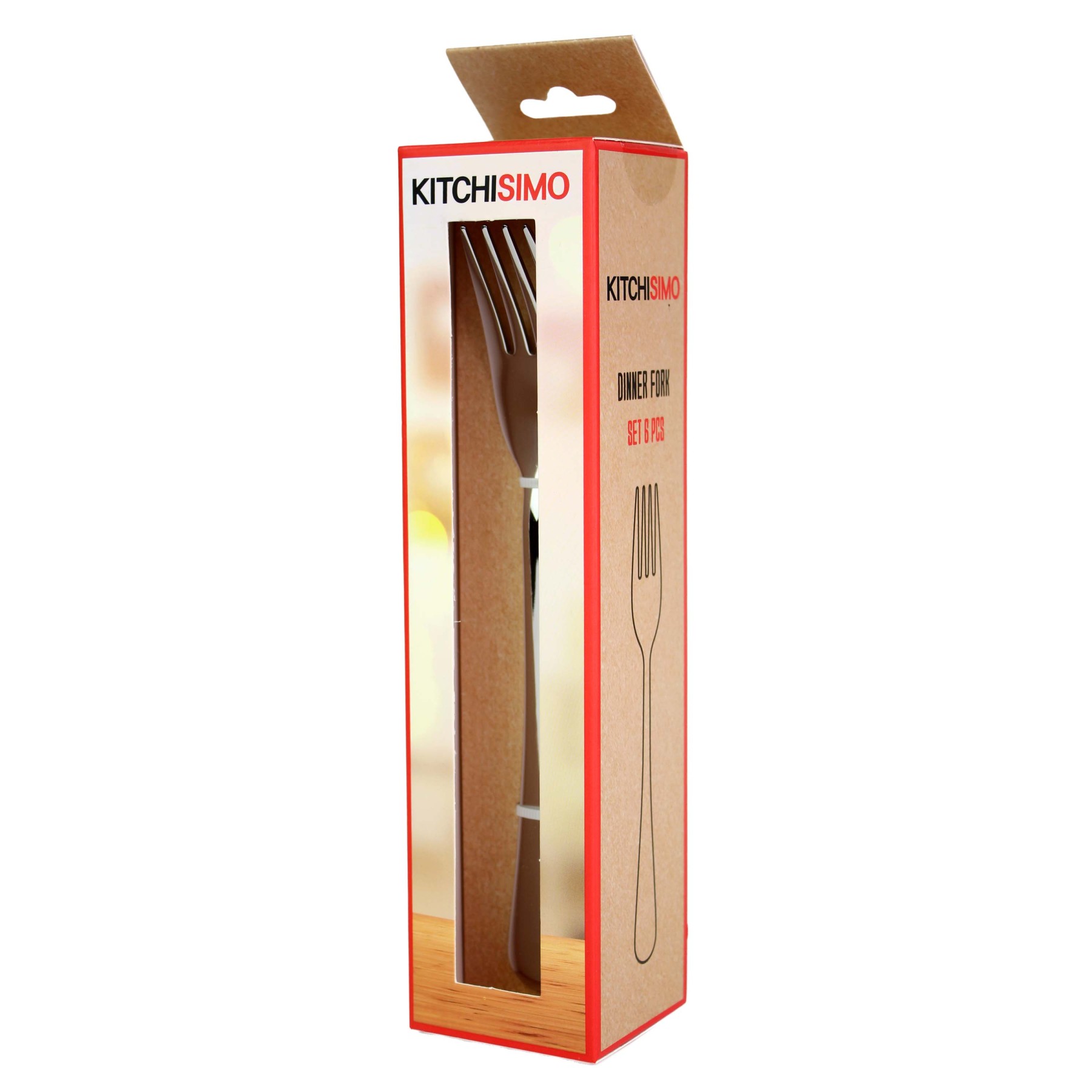Jídelní vidlička Kitchisimo v sadě 6 kusů přináší elegantní a moderní design pro každodenní stolování. Vyrobena z kvalitní nerezové oceli, která zaručuje pevnost, odolnost a dlouhou životnost. Hladký tvar a příjemné vyvážení v ruce zajišťují pohodlné používání – ať už jde o běžný oběd či slavnostní večeři. Sada je elegantně balena v stylové dárkové krabičce – ideální nejen pro vybavení domácnosti, ale i jako pěkný dárek.