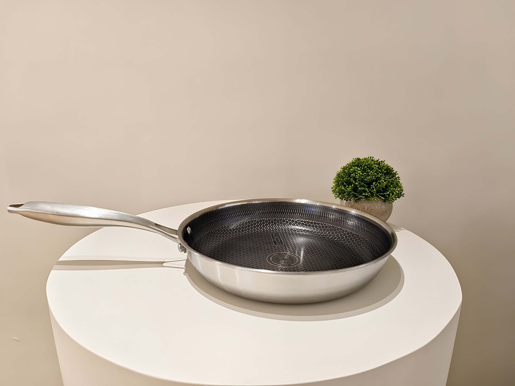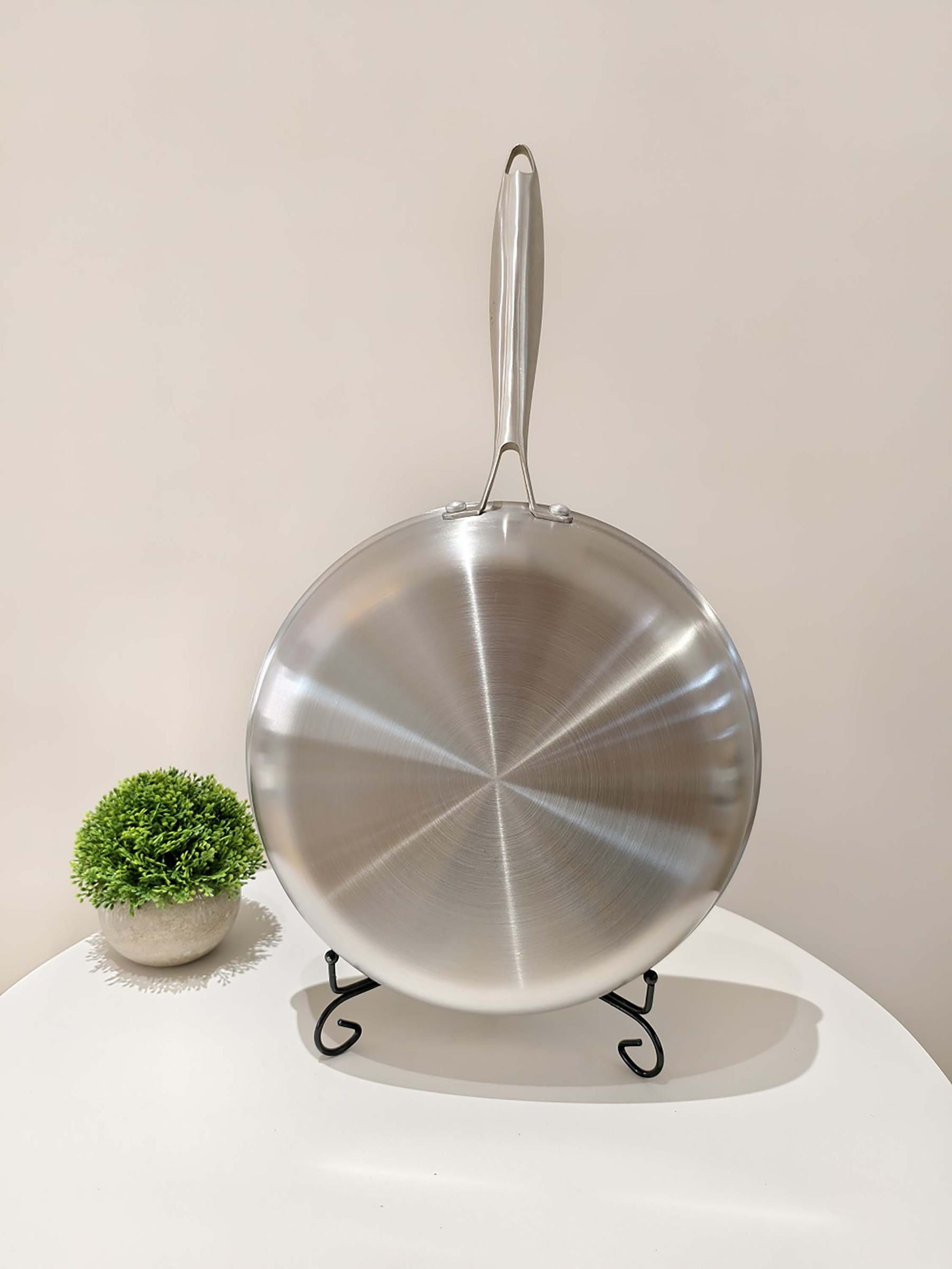 Velký průměr poskytuje dostatek prostoru pro přípravu masa, zeleniny i větších porcí pokrmů pro celou rodinu. Ergonomická rukojeť přinýtovaná dvěma pevnými nýty zajišťuje stabilitu a jistotu při manipulaci. Pánev je vhodná na všechny typy sporáků včetně indukce, a díky celonerezovému provedení ji můžete bez obav vložit i do trouby – spolehlivý společník pro každodenní i slavnostní vaření