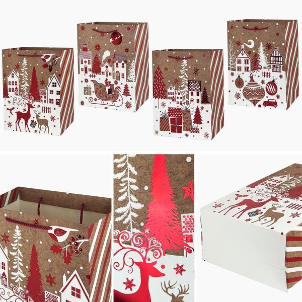 Dárková papírová taška s vánočním motivem, potěšte rodinu a přátele hezkým dárkem ukrytým do papírové tašky.