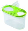 Transparentní provedení umožňuje okamžitý přehled o obsahu, zatímco barevné víčko dodává dóze svěží vzhled. Díky kompaktní velikosti se skvěle hodí i do menších kuchyní nebo polic, kde nezabere zbytečně moc místa – a přitom zůstává plně praktická i při každodenním používání.