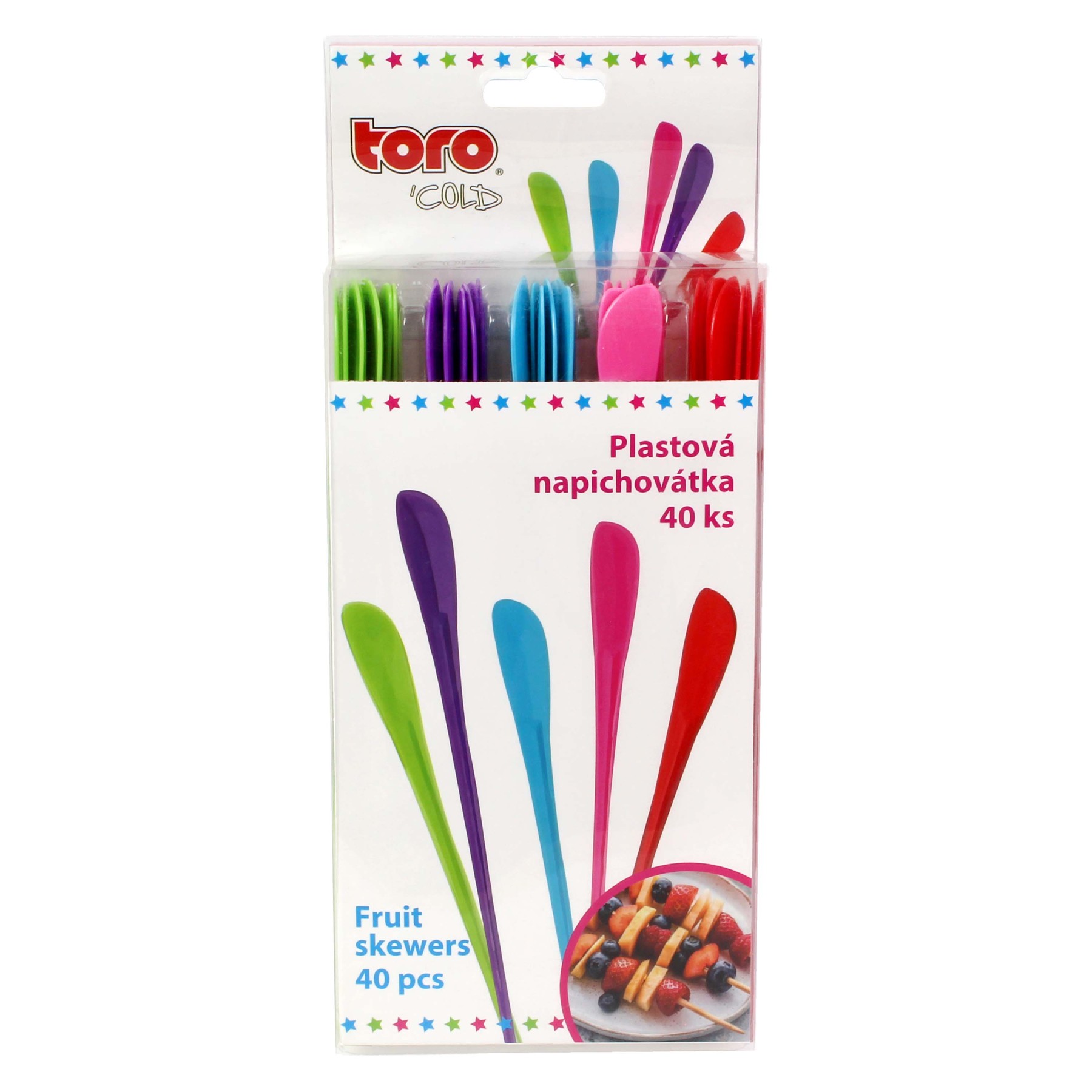 Sada 40 plastových napichovátek TORO v pěti veselých barevných variantách přináší chytré a univerzální řešení pro servírování i konzumaci drobných pochutin. Každý kus funguje nejen jako klasické napichovátko, ale zároveň i jako malá lopatička, díky které snadno naberete ovoce, dezerty nebo krémové pochoutky. Skvěle se hodí na ovocné talíře, jednohubky, drinky, zmrzlinové poháry nebo třeba čokoládové fondue, kde oceníte kombinaci napíchnutí i pohodlného nabírání.