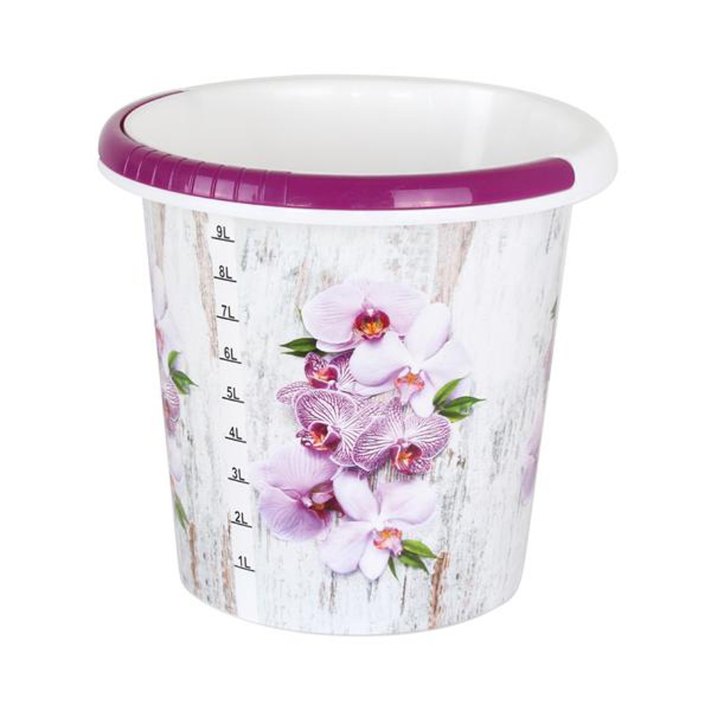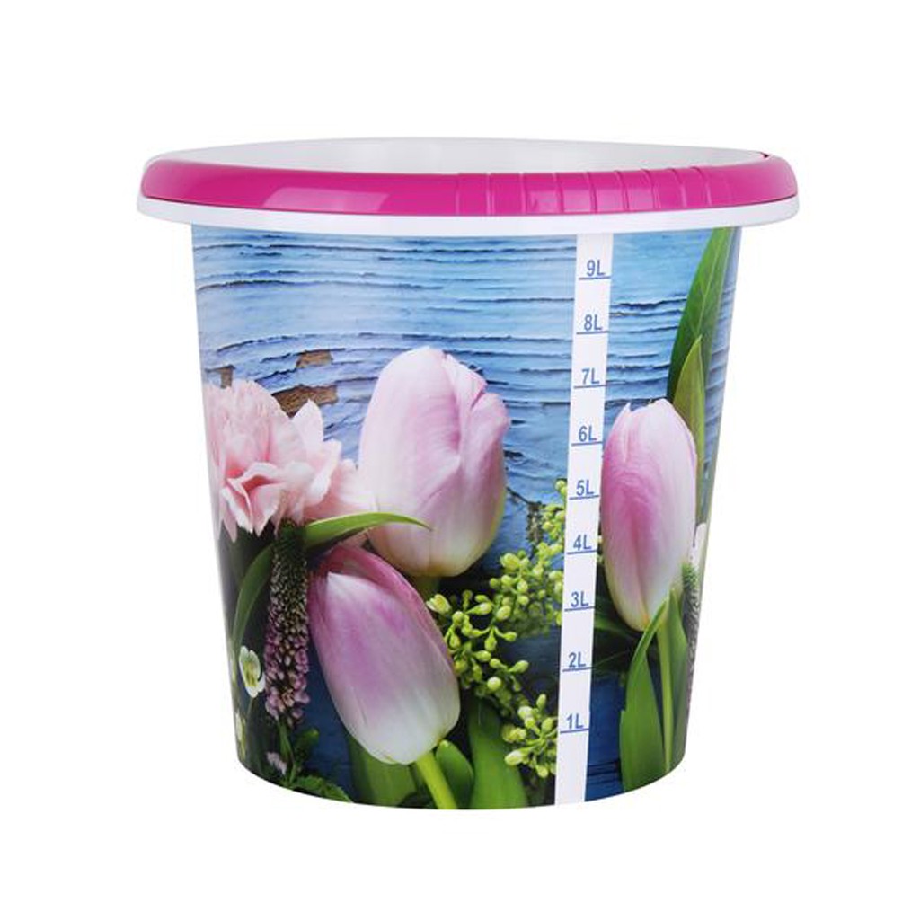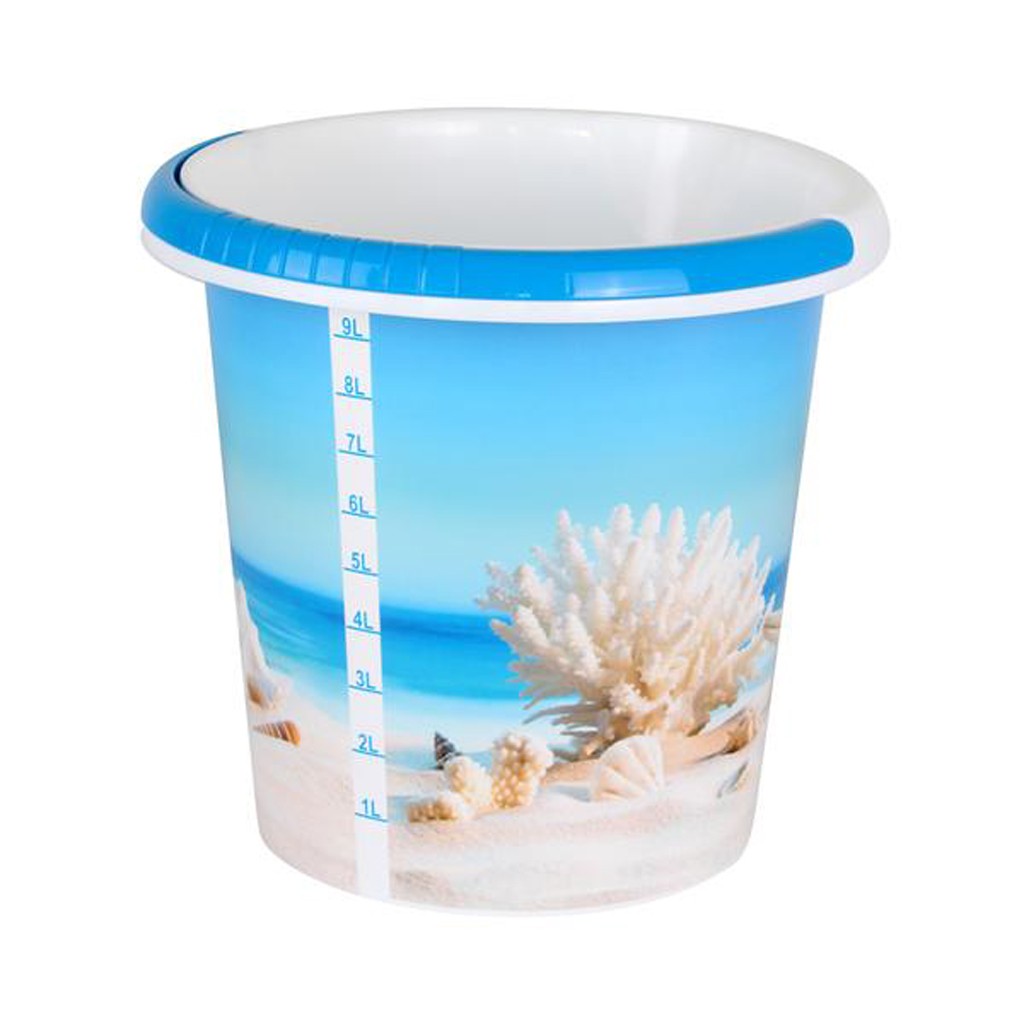 Plastový kbelík s dekorem je nepostradatelný pomocník při úklidu.