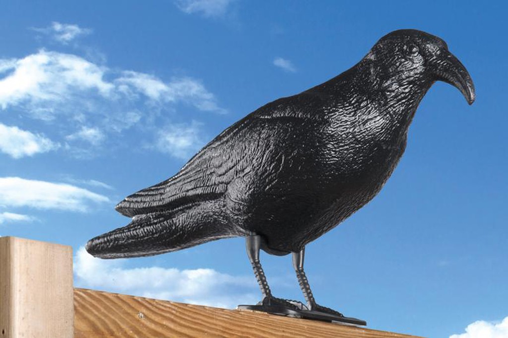 Černá plastová maketa havrana funguje jako odpuzovač holubů a jiného ptactva. Odradí je od náletů na balkony, terasy či zahrady. Více o produktu