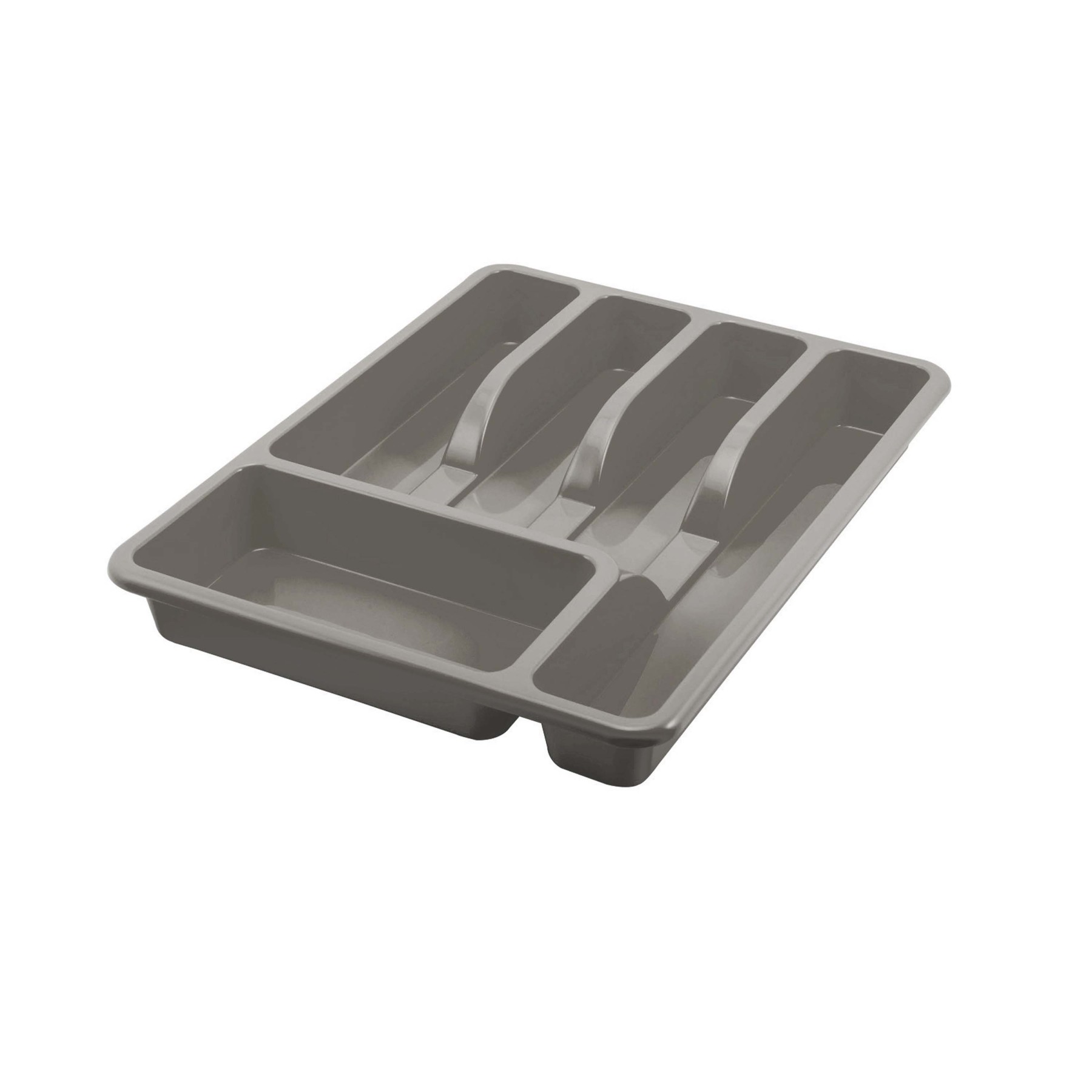 Plastový příborník je vhodný do každé domácnosti, je tvořen pěti jednotlivými přihrádkami pro všechny druhy příborů a kuchyňských drobných potřeb. Snadno se udržuje, vhodný do myčky. Rozměr 34 x 26 x 4 cm, barva bílá, taupe.