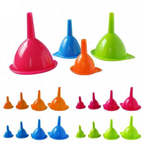 Sada trychtýřů různých velikostí vyrobená ze zdravotně nezávadného plastu. Trychtýře jsou vhodné do myčky. Balení obsahuje 4 ks. Assort barev. Rozměry - 13,1 x 14, 5 cm. Více o produktu