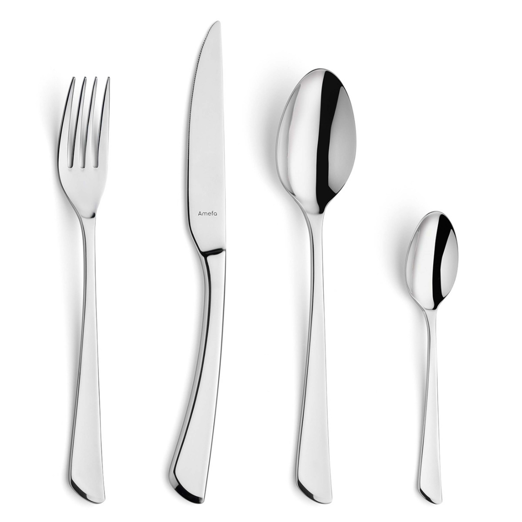 Sada příborů Juno od značky Amefa představuje vynikající kombinaci kvalitního materiálu a příjemného designu. Vyrobena je z odolného nerezové oceli 18/0 s vysoce lesklou povrchovou úpravou – což zaručuje dlouhou životnost i zachování estetického vzhledu. Zakřivené rukojeti dodávají jedinečný charakter, zatímco plné proporce a vyvážená hmotnost zajišťují příjemný pocit při používání. Tato sada zahrnuje vše potřebné pro šest osob – nože, vidličky, lžíce i kávové lžičky – a nabízí tak stylové stolování od snídaně až po večeři.