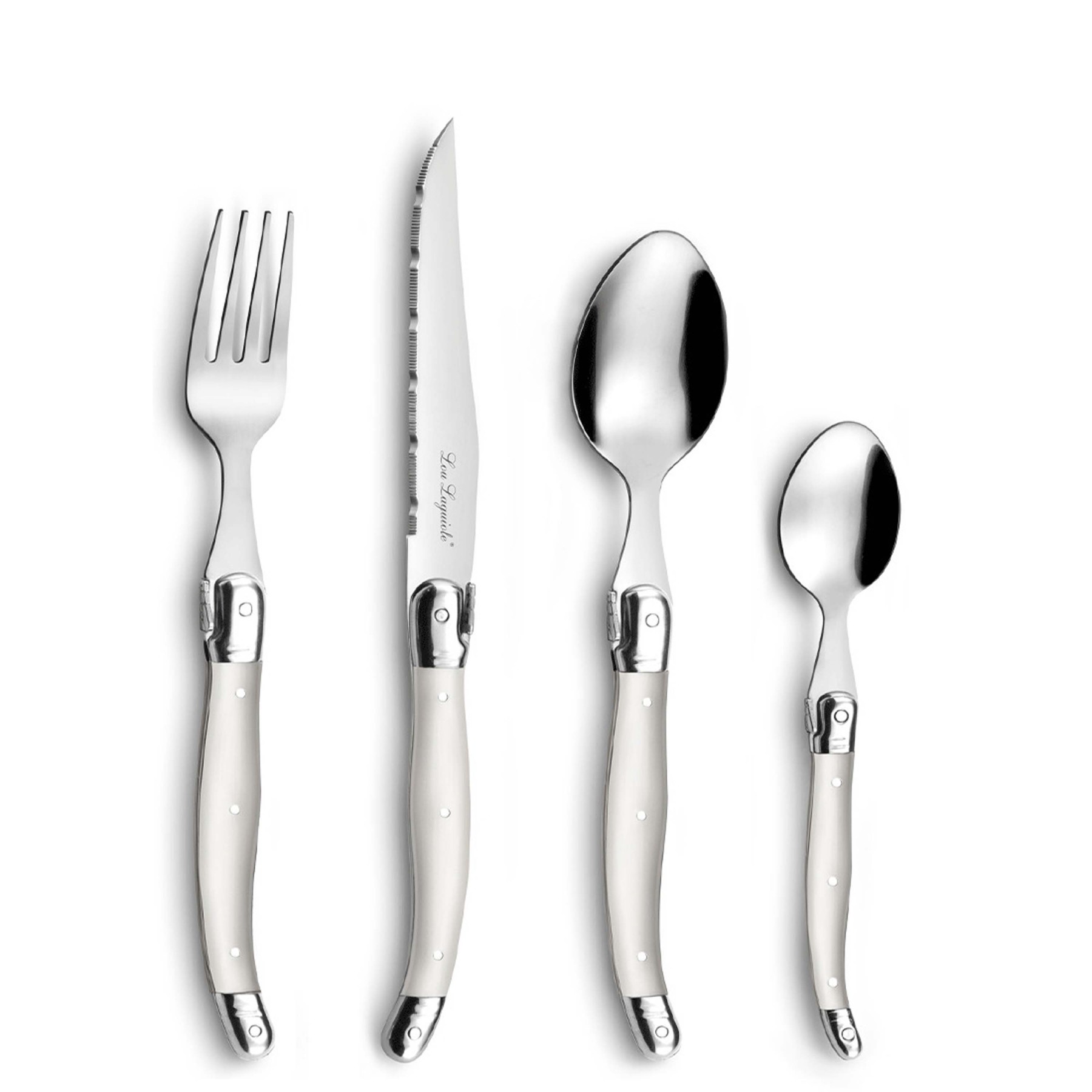 Sada příborů Amefa Tradition vyniká svým ikonickým tvarem, který kombinuje klasickou eleganci s nenápadnou moderností. Lehce zaoblené rukojeti působí příjemně v ruce a zaručují dokonalou rovnováhu mezi komfortem a estetikou. Nože se speciálním zoubkovaným ostřím snadno krájí maso i křehké pečivo, aniž by vyžadovaly větší tlak. Povrch z kvalitní nerezové oceli 18/0 a 13/0 má vysoký lesk, který zvýrazňuje každé prostření a dodává mu slavnostní nádech. Řada Tradition tak představuje poctu tradičnímu stolování – bez zbytečných ozdob, zato s důrazem na tvar, funkčnost a dokonalé zpracování.