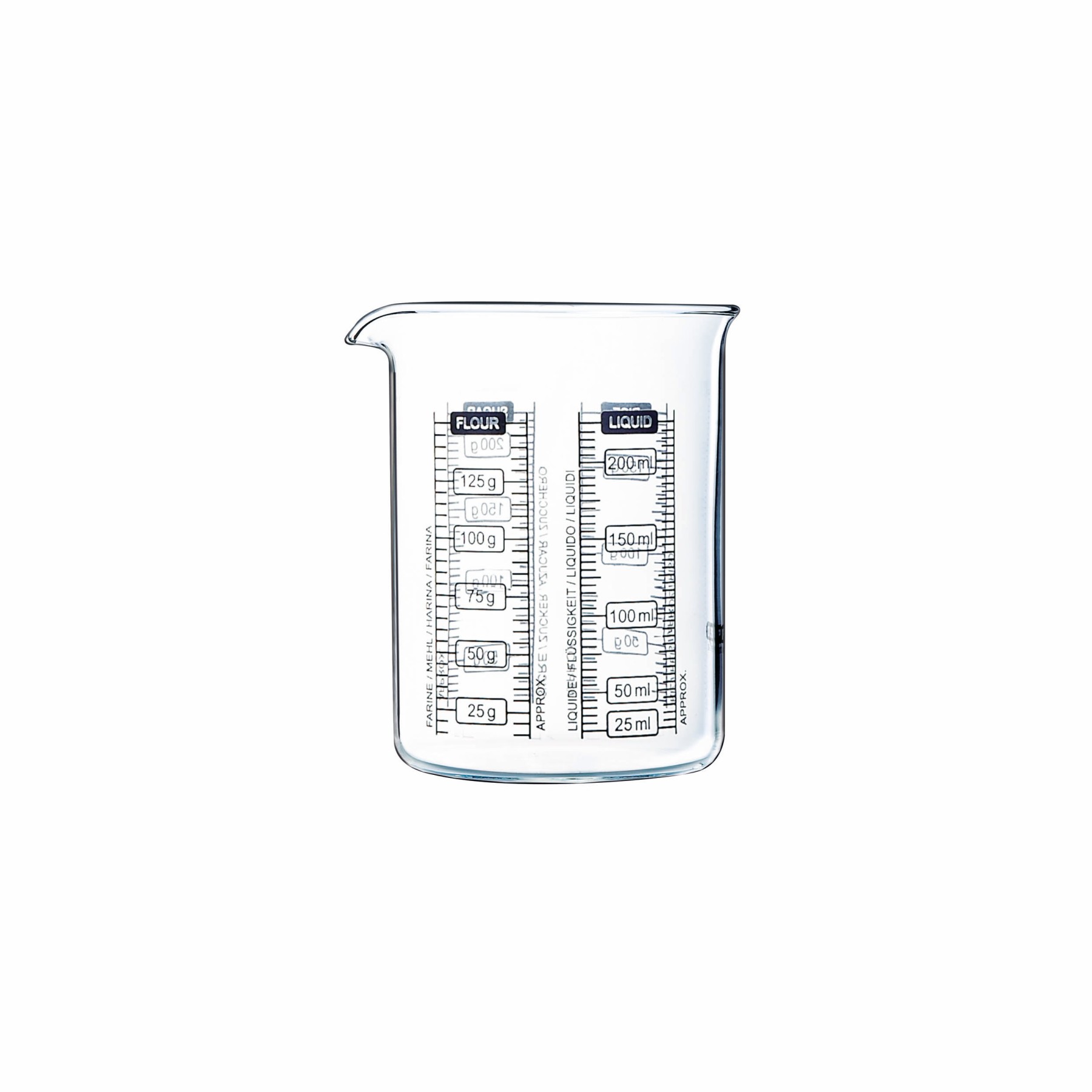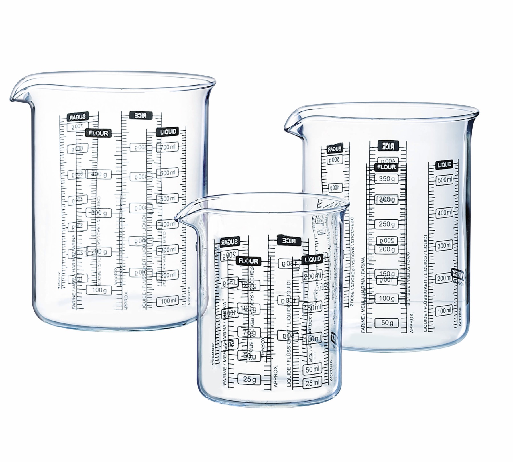 Pyrex odměrka je vyrobena z vysoce odolného skla, které lze vložit i do trouby. Nepožívejte ale při teplotách nad 180 °C - mohla by se poškodit stupnice.