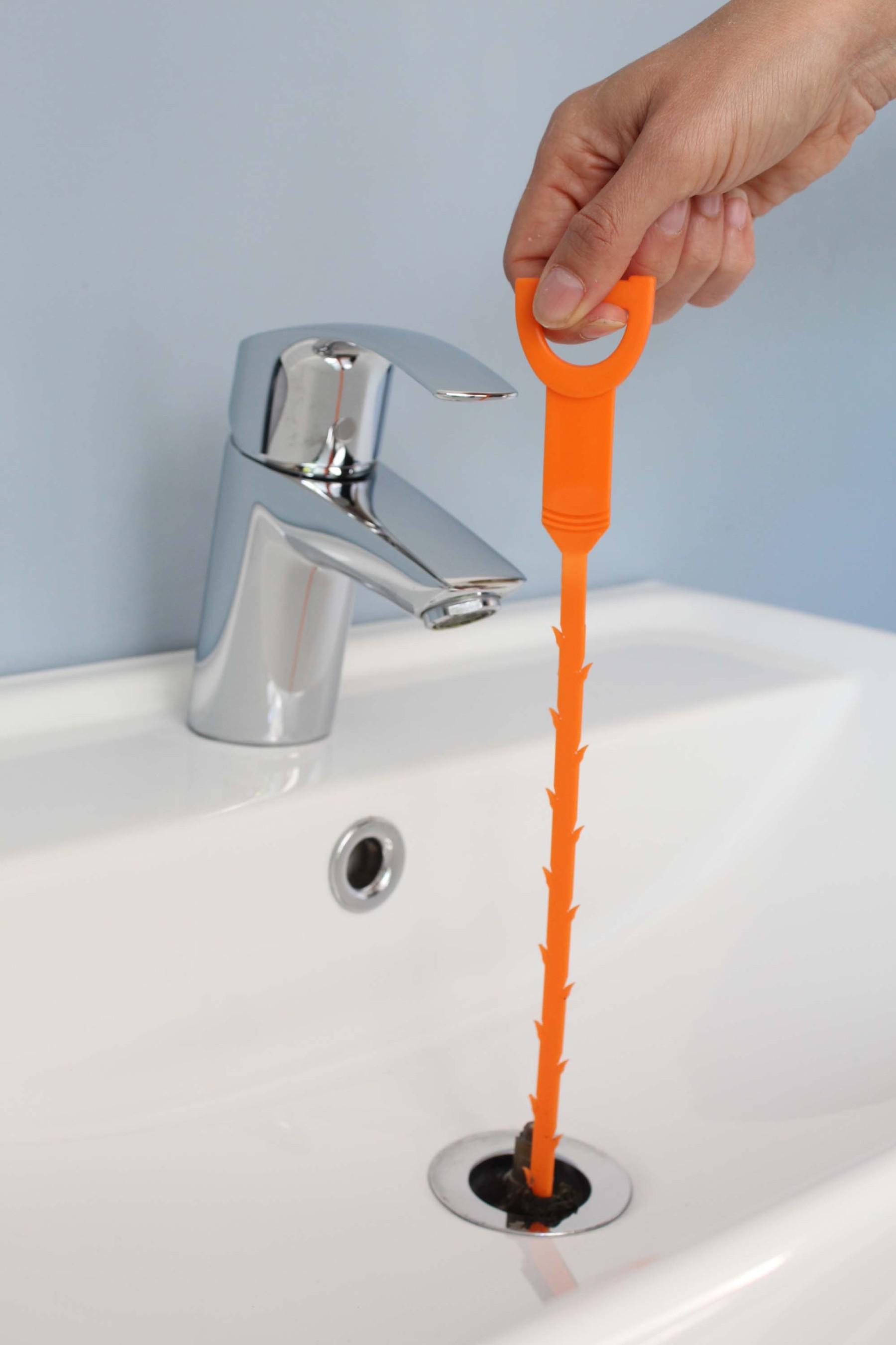 Tyčinku stačí zasunout do odtoku, současně s ní otáčet a pohybovat nahoru a dolů. Poté ji stejným otáčivým pohybem pomalu vytáhněte – zachycené nečistoty zůstávají na protiháčcích a odpad tak zůstane čistý a průchodný. Výrobek je ideální pro odtoky s větším otvorem a vyjímatelnou zátkou. Nepoužívejte jej u pevně zabudovaných sítek s malými otvory, kde by se háčky mohly zachytit. Po použití tyčinku opláchněte pod tekoucí vodou a nechte oschnout – je připravena k dalšímu použití.