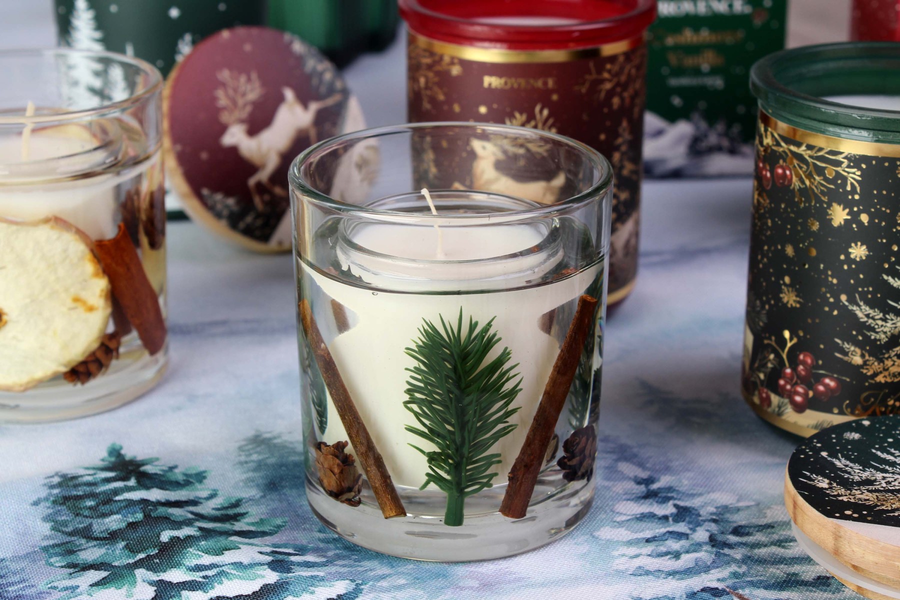 Celou scénu pak můžete sladit s našimi originálními vánočními kolekcemi výrobků s vánočními motivy, které kombinují vůně, design i barvy do uceleného stylu. A pokud se po Vánocích rozhodnete svíčku znovu využít, zkuste ji přeměnit v praktickou skleněnou dózičku – třeba na koření, svorky nebo ozdobné korálky.