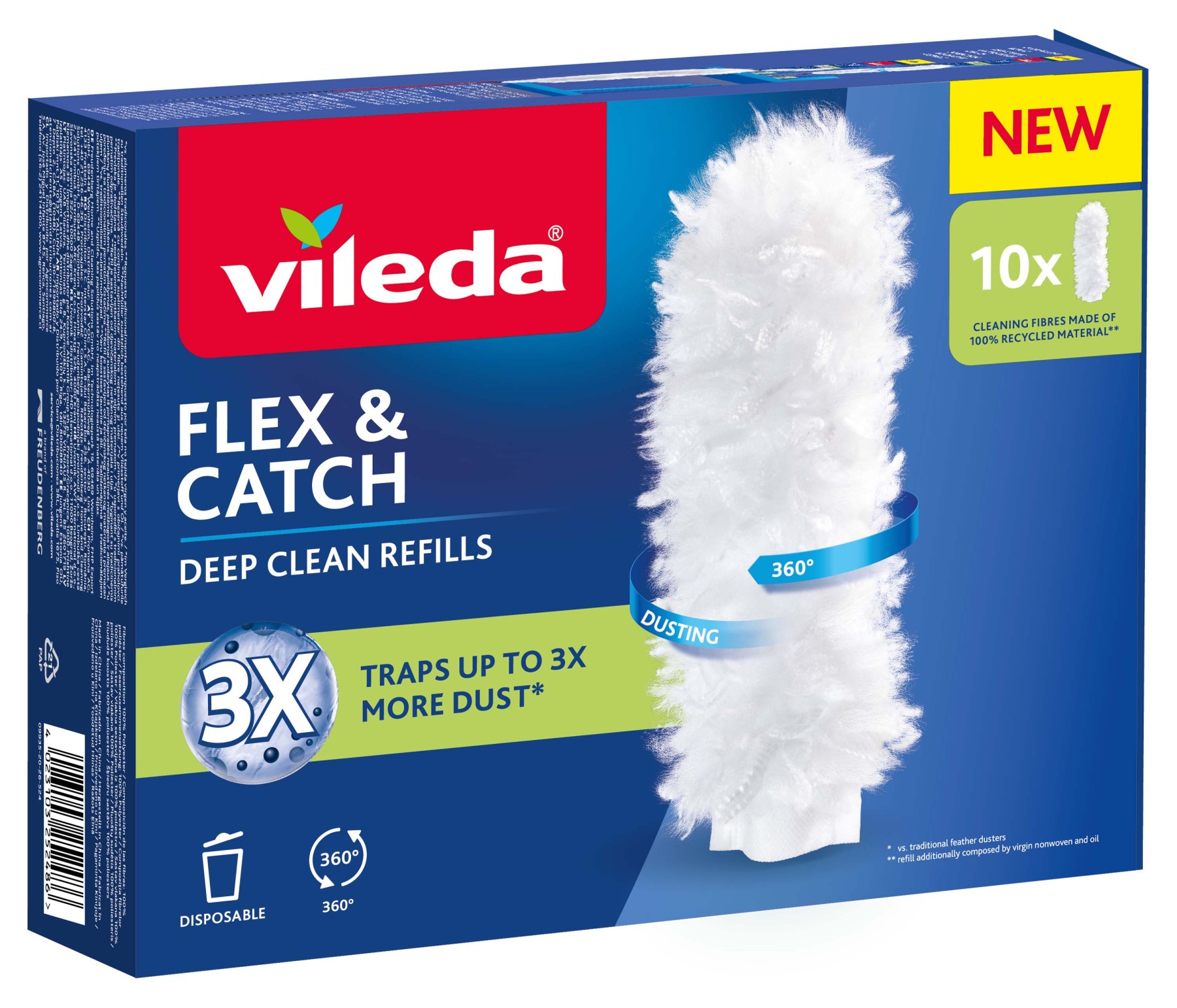 Náhradní návleky Vileda Flex & Catch jsou určeny pro prachovky stejné řady a umožňují udržet úklid domácnosti stále stejně účinný. Díky patentovanému designu dokážou zachytit až třikrát více prachu než tradiční prachovky, takže prach nejen přesouvají, ale skutečně ho zadržují ve vláknech.